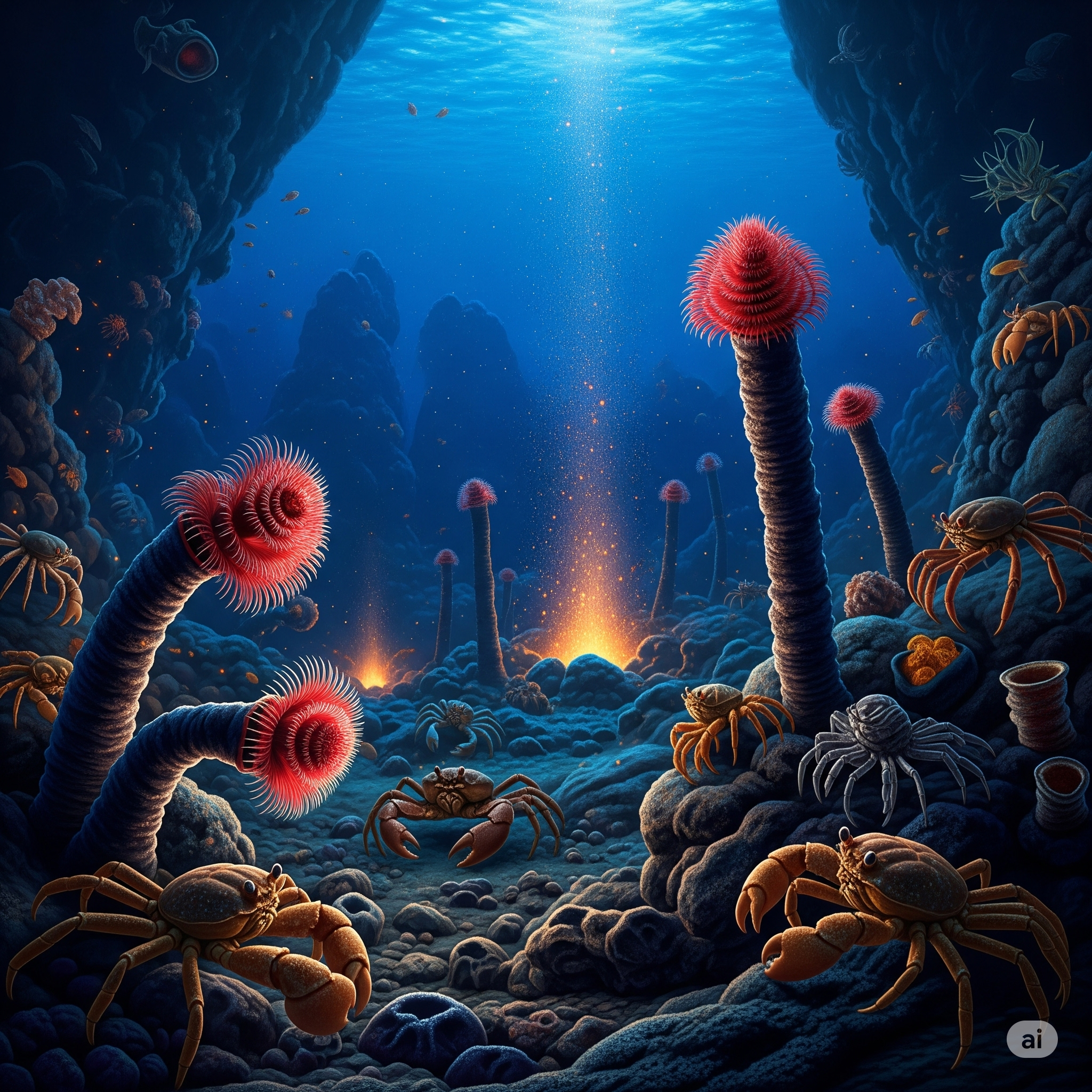 이들을 먹이 삼아 거대한 관벌레, 조개류, 새우, 게, 그리고 특이한 형태의 물고기 등 상상하기 어려운 다양한 심해 생명체들이 번성하는 독특한 생태계를 형성하고 있습니다. 열수분출구 주변은 생명체가 살 수 없을 것 같은 극한 환경 속에서 오히려 생명의 오아시스가 되는 셈이죠.
